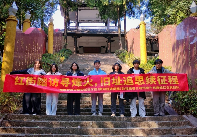 冬日的闽西北大地,层林尽染间藏着红色底蕴,福建三明泰宁县这片中央苏区的红色热土,在冬日暖阳中诉说着峥嵘岁月。为深入学习贯彻红色文化精神,厚植爱国情怀,福建农林大学安溪茶学院学子组成寒假社会实践队,远赴泰宁县踏上红色研学之旅。实践队循着红军足迹,探访红军街、朱德与周恩来旧居、红军博物馆、红军纪念碑与红军亭等红色地标,在触摸历史遗迹、聆听革命故事中感悟初心使命,助力红色文旅发展中践行青年担当,让青春之花绽放在红色实践的沃土上。
