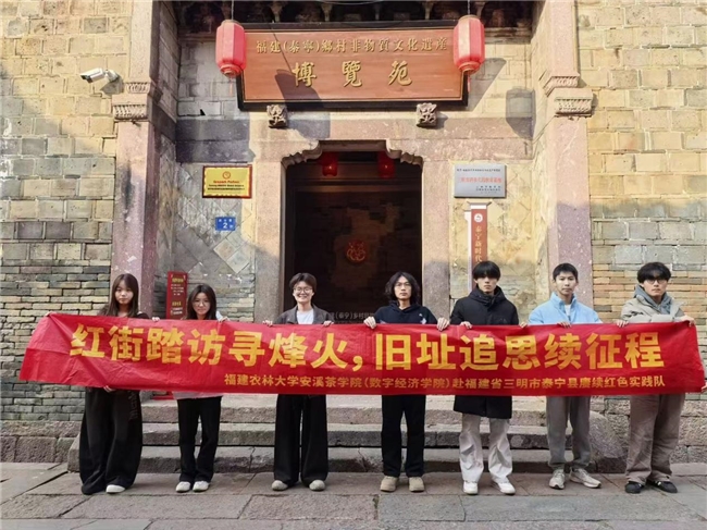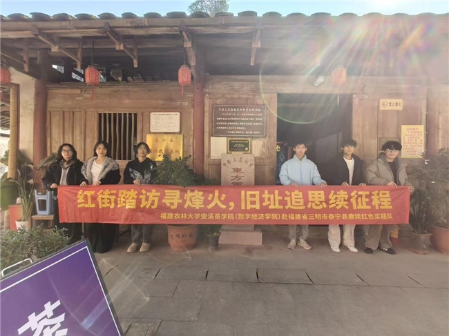 1月中旬,福建农林大学安溪茶学院(数字经济学院)“赓续红色”实践队奔赴三明市泰宁县,开展为期三天的“三下乡”红色主题实践活动。实践队以“红街踏访寻烽火,旧址追思续征程”为主题,通过红色旧址探访、非遗文化体验、红色精神宣讲和行走课堂研学,在闽西北的红色沃土上重温革命历史、传承红色基因,也为青年学子厚植家国情怀搭建了生动的实践课堂。