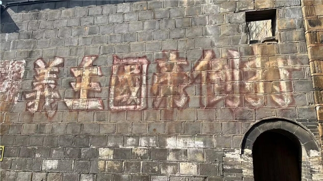 转过街角,一面斑驳灰墙赫然入目,标语“打倒帝国主义国民党”历经风雨洗礼,笔力遒劲,墨迹深刻。1933年的某个清晨,年轻的红军宣传员曾站在条凳之上,挥毫泼墨,将对革命最纯粹的信念刻进青墙的肌理。沿街缓行,多处老宅外墙上都留有类似的红色印记。有的标语书写于门楣之侧,有的镌刻在窗棂之间,墨色深深渗入土墙,与建筑融为一体。据当地居民介绍:“这些字是用锅灰拌桐油写成的,雨打风吹都不掉。”朴素的材料选择,不仅体现了战争年代的艰苦卓绝,更彰显了红军将士让革命理想在人民心中扎根的坚定决心。这些标语已超越单纯的口号,成为镌刻在建筑肌理中的信仰符号,见证着“笔杆子与枪杆子并肩作战”的特殊历史。