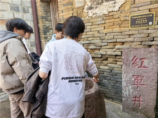 红军街中段,一方石井静静伫立。井沿上“红军井”三字依稀可辨。1933年,红军驻扎泰宁期间,为解决当地百姓饮水困难,亲手开凿了这口井。井内青苔斑驳,实践队的成员望向井内,石缝间仿佛还回荡着当年的欢声笑语——红军战士与老乡一同提水劳作的场景,军民共饮一井水的温馨画面,穿越时空,鲜活如初。“吃水不忘挖井人”,这句朴素的话语在这里有了最具体、最动人的承载。这口井不仅滋养了一方百姓的身体,更成为共产党人“全心全意为人民服务”初心的活态象征。