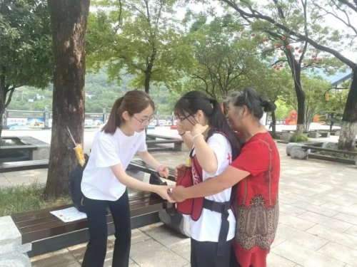 博爱青春急救西游行团队志愿者小分队通过发放急救知识的宣传单,为活动引流。他们热心地向游客详细介绍了海姆立克急救法的原理、适用场景及操作步骤。为了帮助大家更好地理解,志愿者们还列举了许多生活中因异物梗塞导致窒息的真实案例,强调了掌握该急救法的重要性。